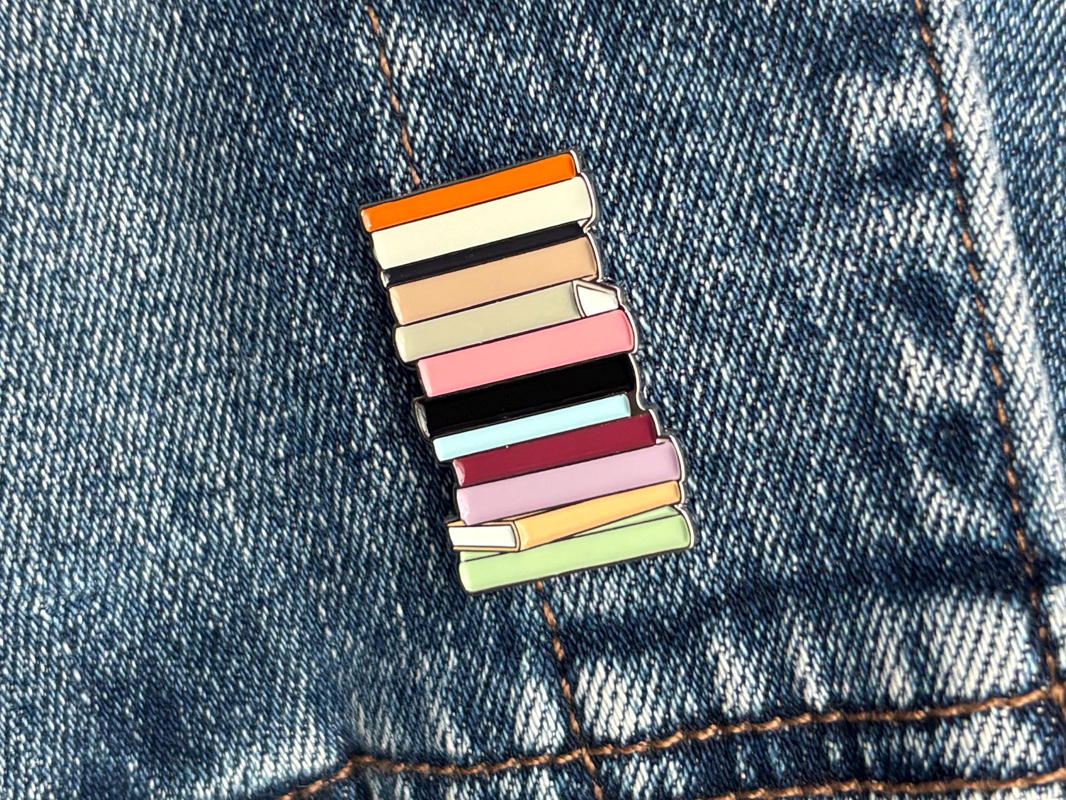 Celebrate every era of your reading life with this beautifully designed Eras Bookshelf Enamel Pin! Featuring a colorful stack of books, this pin is perfect for anyone who loves stories, collecting enamel pins, or expressing their personality through fun accessories.