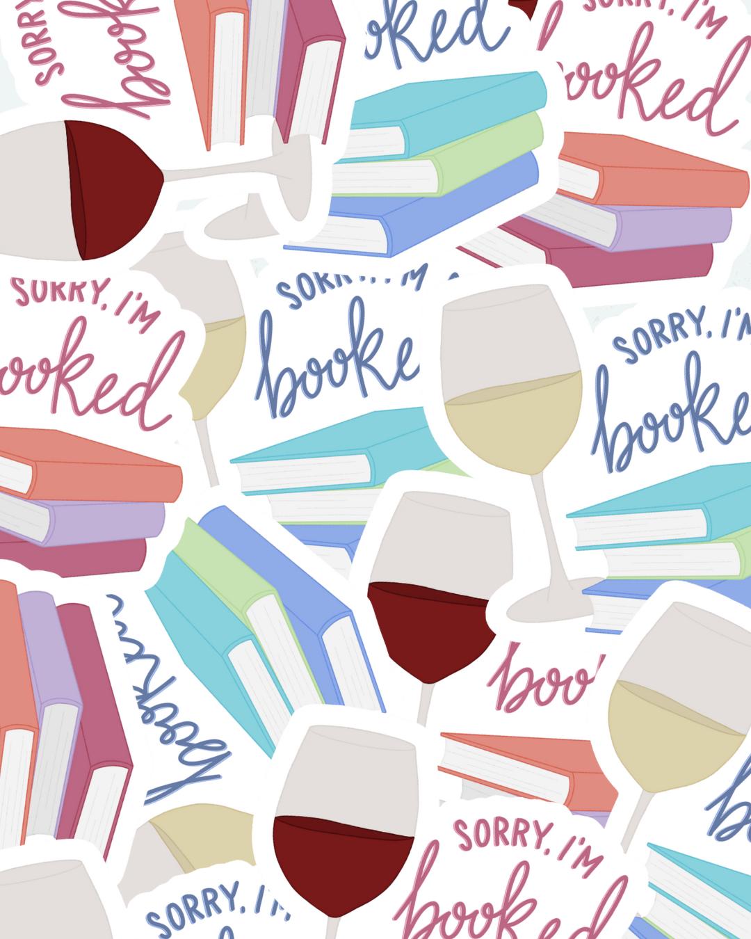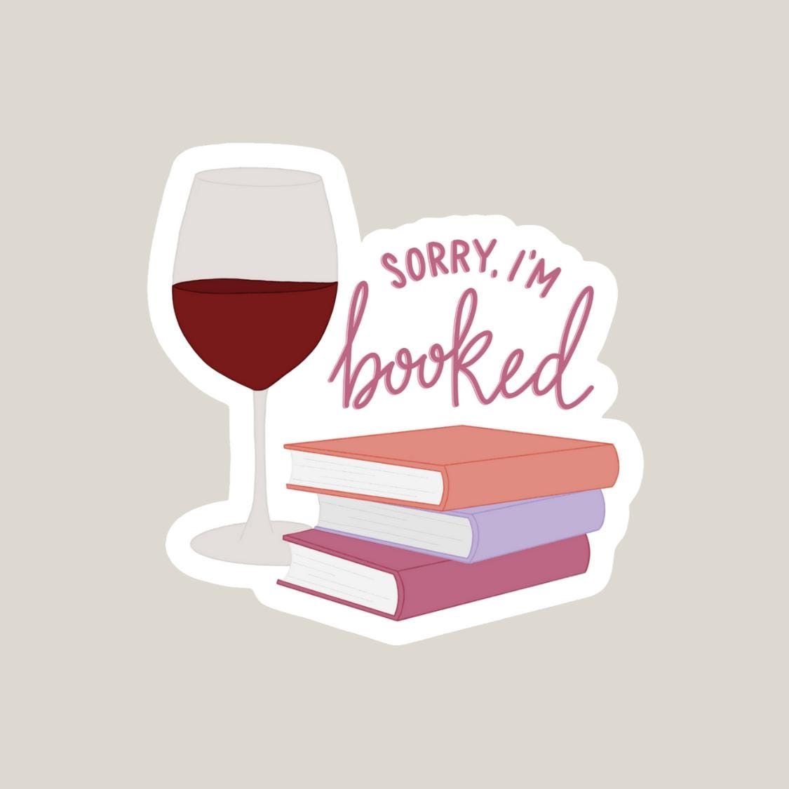 Show off your love of books (and wine) with this charming “Sorry I’m Booked” sticker! Featuring a cozy stack of books paired with a glass of red or white wine, it’s the perfect accessory for readers who’d rather spend the evening lost in a good story. This sticker is great for decorating laptops, water bottles, e-readers, journals, or anywhere you want to add a little literary personality. A thoughtful gift for book lovers, wine enthusiasts, or anyone who appreciates a good night in.