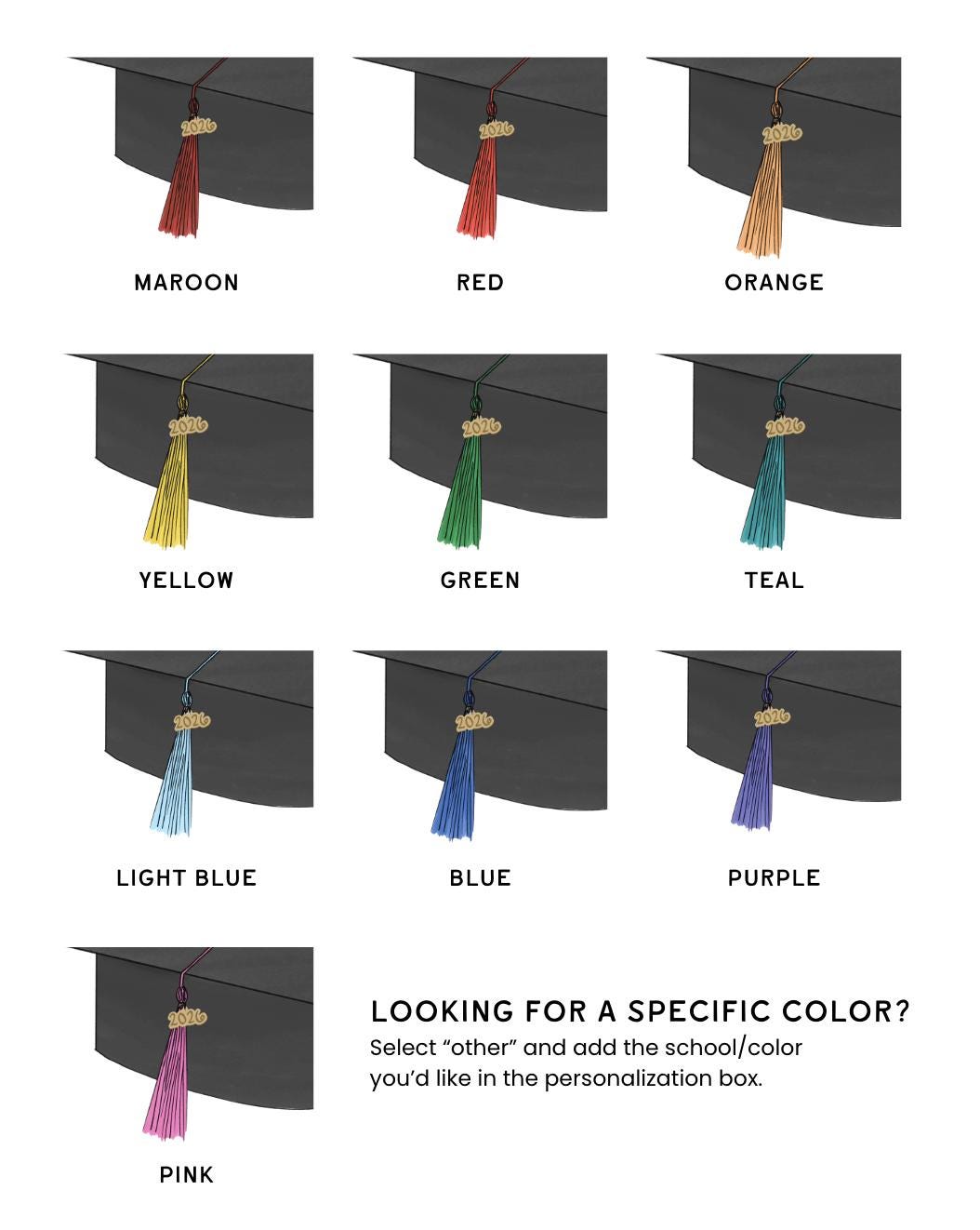 Looking for a specific color? Select “other” and add the school/color you’d like in the personalization box.